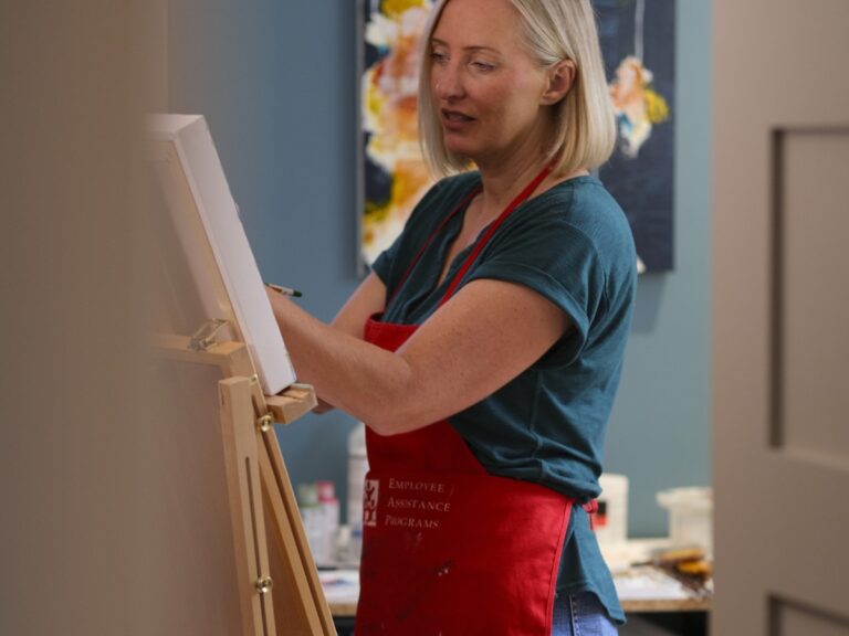 It’s important that the abstract art being created for you is in line with what you discussed. While Carolyn is an intuitive abstract artist (meaning there is no sketch that she follows for any given piece) she does follow colour theories and will block her canvas for shapes, etc.